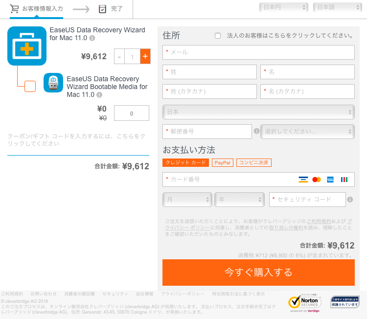 購入は至って簡単で「メールアドレス、名前、住所、クレジットカード情報」を入力して購入するだけ。