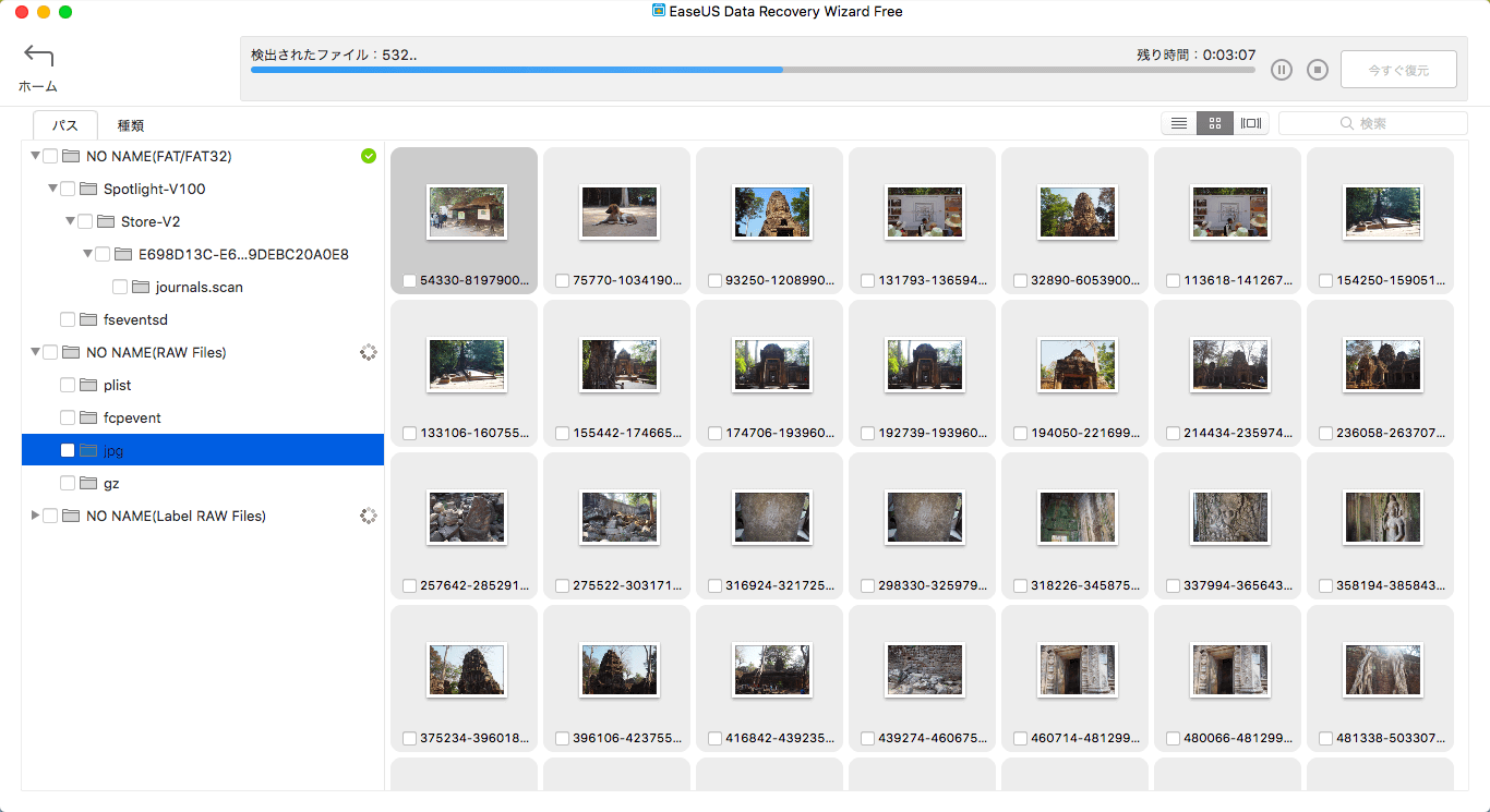 検索が開始されます。今回はデジカメの写真を復元したいので「画像」を選択してみましょう。