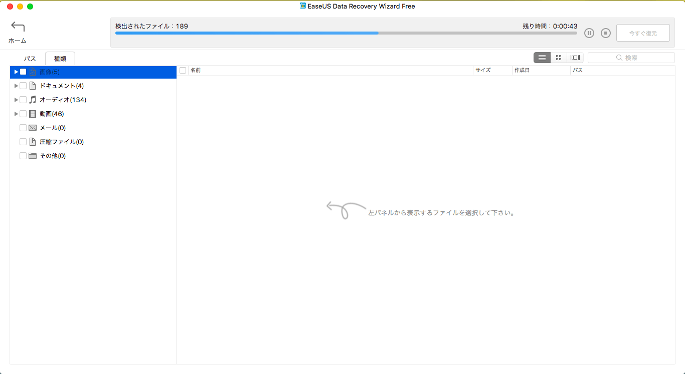 EaseUS Data Recovery Wizard for Mac Freeは、すべての失われたデータを簡単かつ迅速に復元できるMac用のソフトウェア。ドキュメント、写真、メール、動画、またはほかのファイルをMacドライブ及びほとんどの記憶装置から復元することができます。